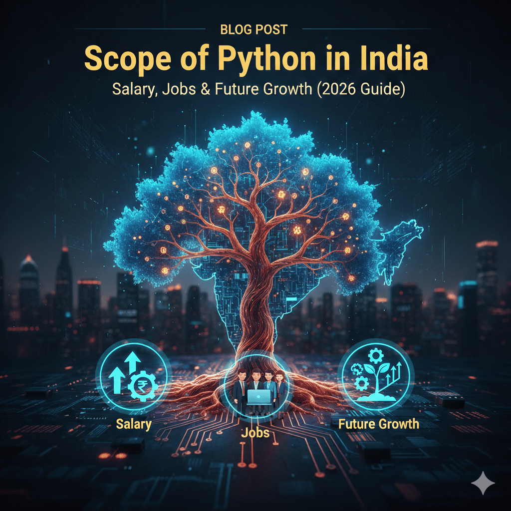 From startups to multinational companies, from Artificial Intelligence to Cybersecurity, Python is powering innovation everywhere. If you’re a student, fresher, or working professional wondering about the scope of Python in India, this guide will give you complete clarity about salary, career opportunities, and long-term growth.